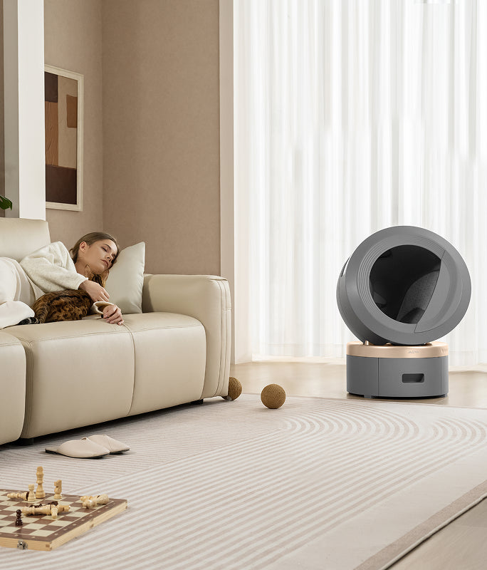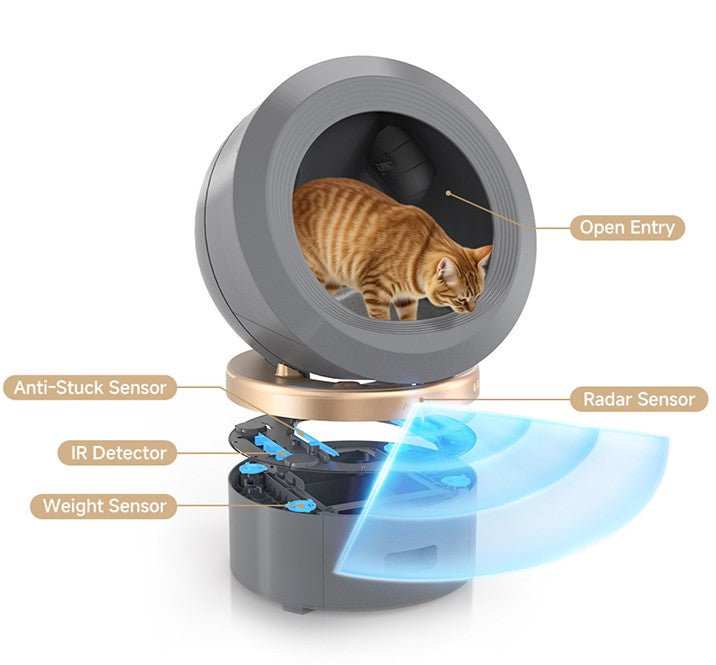 Extra rymlig och intelligent självrengörande kattlåda