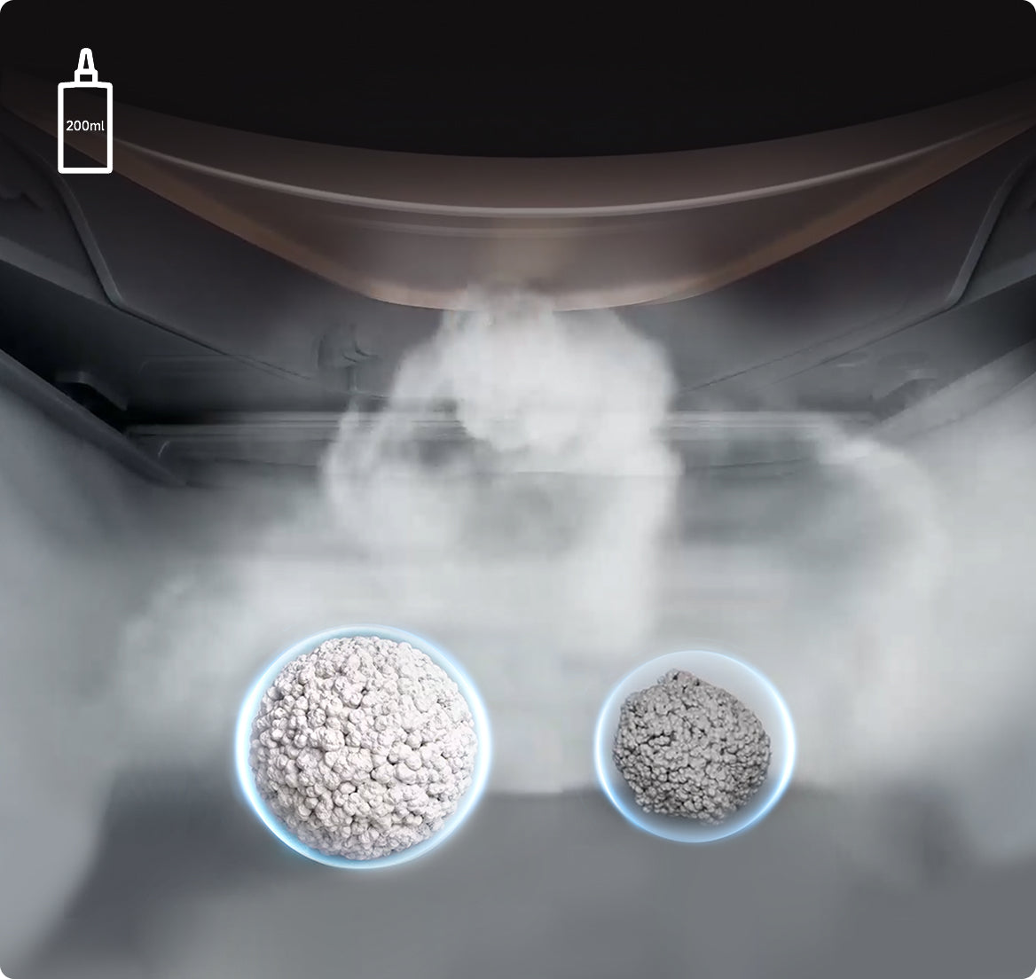 Den exklusiva automatiska luktneutraliserande sprayen används för att försegla skadliga gaser så snabbt som möjligt. Den bildar en nanofilm på ytan och använder biologiska enzymer för att bryta ner lukter vid källan*, vilket hämmar bakterietillväxt.
