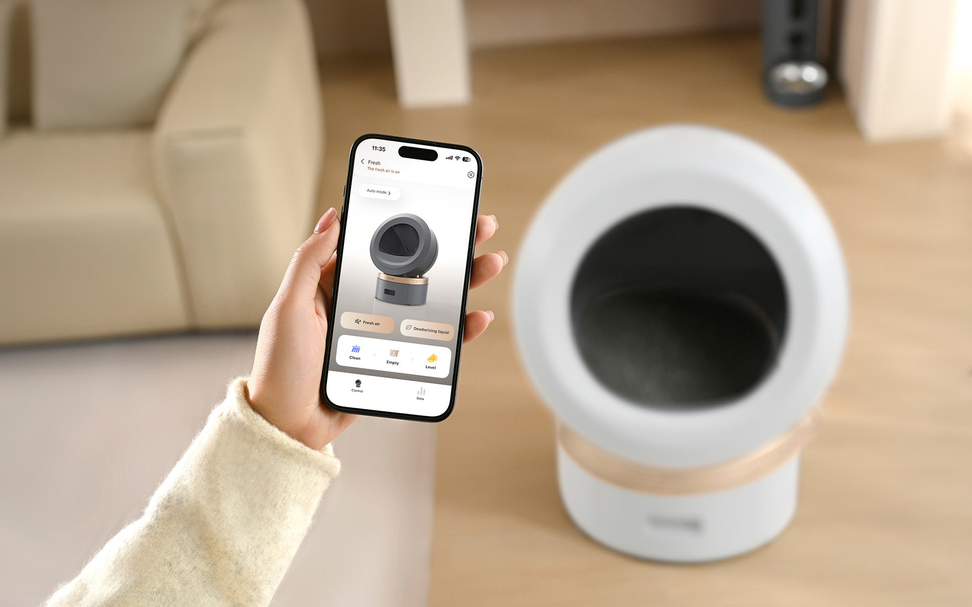 Den exklusiva automatiska luktneutraliserande sprayen används för att försegla skadliga gaser så snabbt som möjligt. Den bildar en nanofilm på ytan och använder biologiska enzymer för att bryta ner lukter vid källan*, vilket hämmar bakterietillväxt.