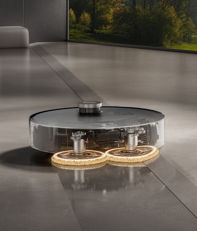 Njut av en helautomatisk städupplevelse då MOBIUS 60 smart separerar dammsugning och moppning genom att lyfta mopparna eller sidoborsten när de inte används.
