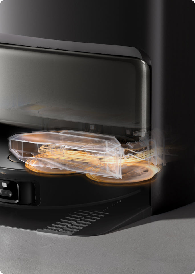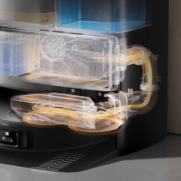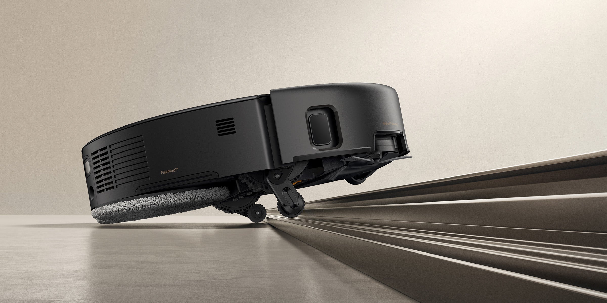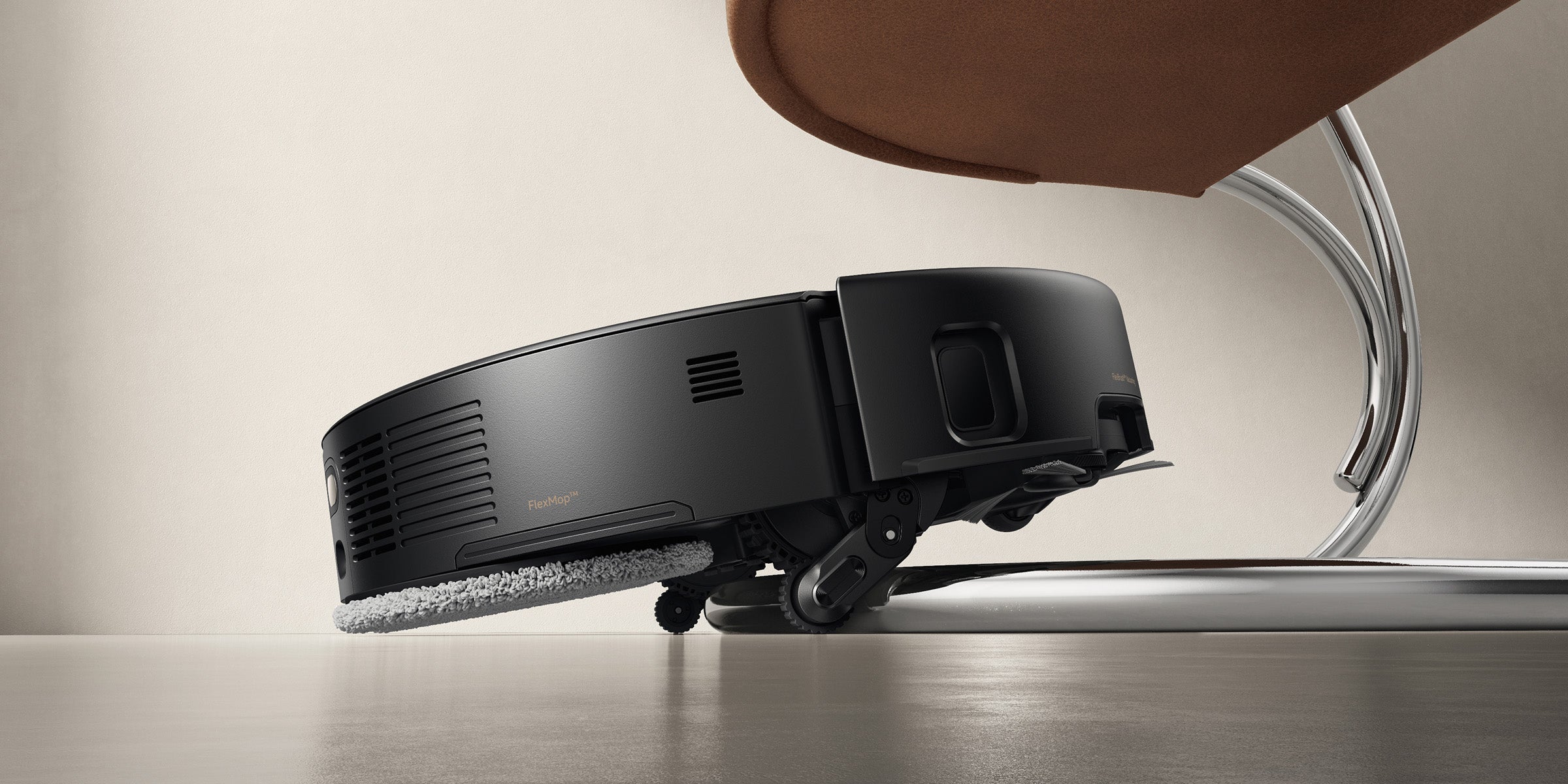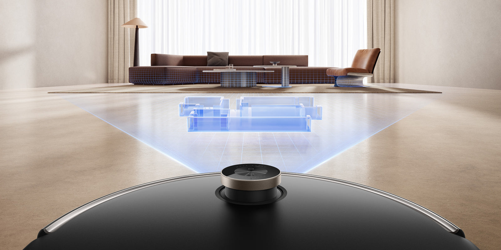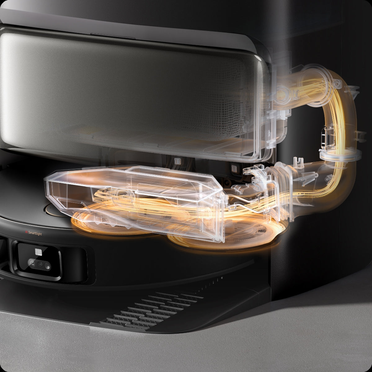 StepMaster™-systemet har ett infällbart robotstöd som kan lyfta chassit och enkelt ta sig över trappsteg, trösklar, dörrskenor, U-formade möbelben och mindre hinder på upp till 6 cm*. Systemet kan enkelt navigera komplexa omgivningar för en grundlig rengöring och smidig återgång till basstationen.