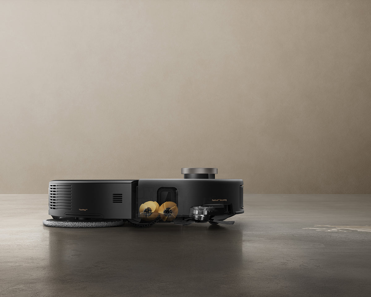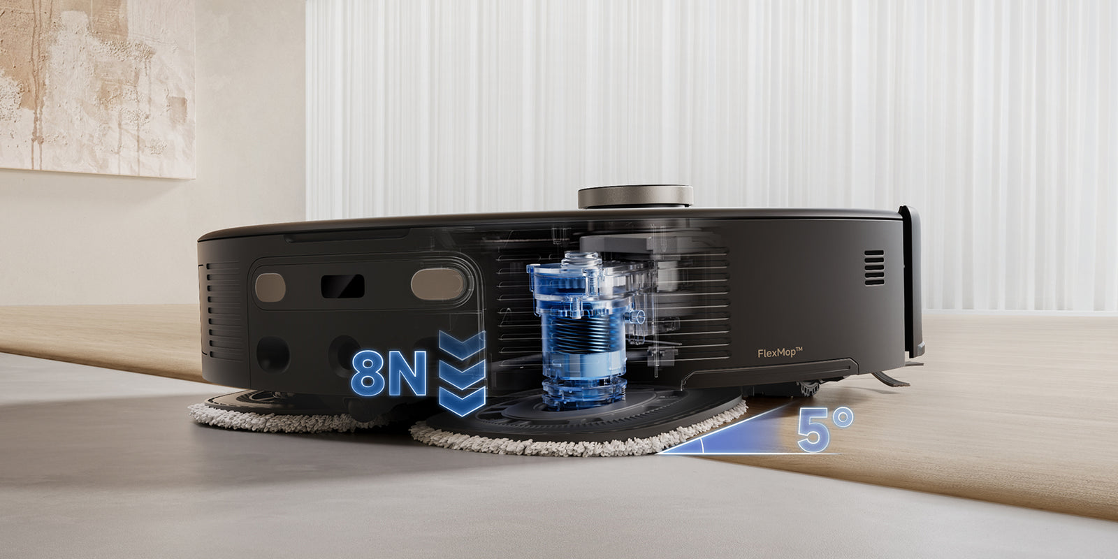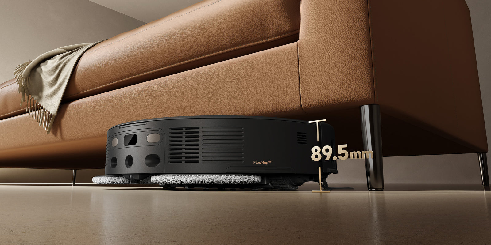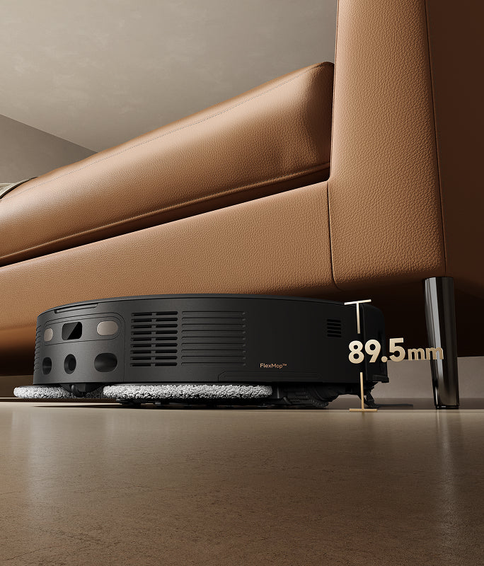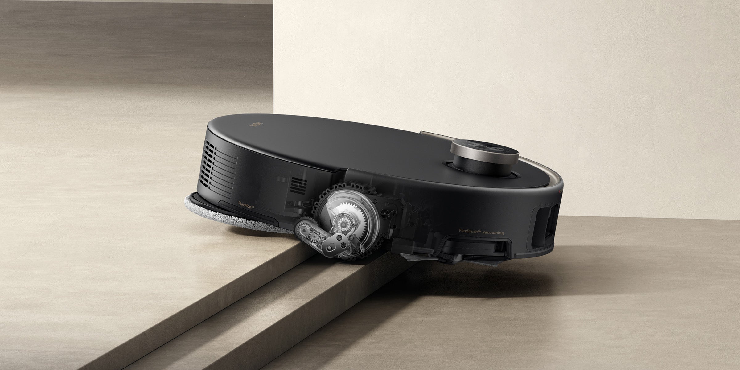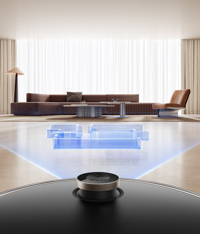 StepMaster™-systemet har ett infällbart robotstöd som kan lyfta chassit och enkelt ta sig över trappsteg, trösklar, dörrskenor, U-formade möbelben och mindre hinder på upp till 6 cm*. Systemet kan enkelt navigera komplexa omgivningar för en grundlig rengöring och smidig återgång till basstationen.