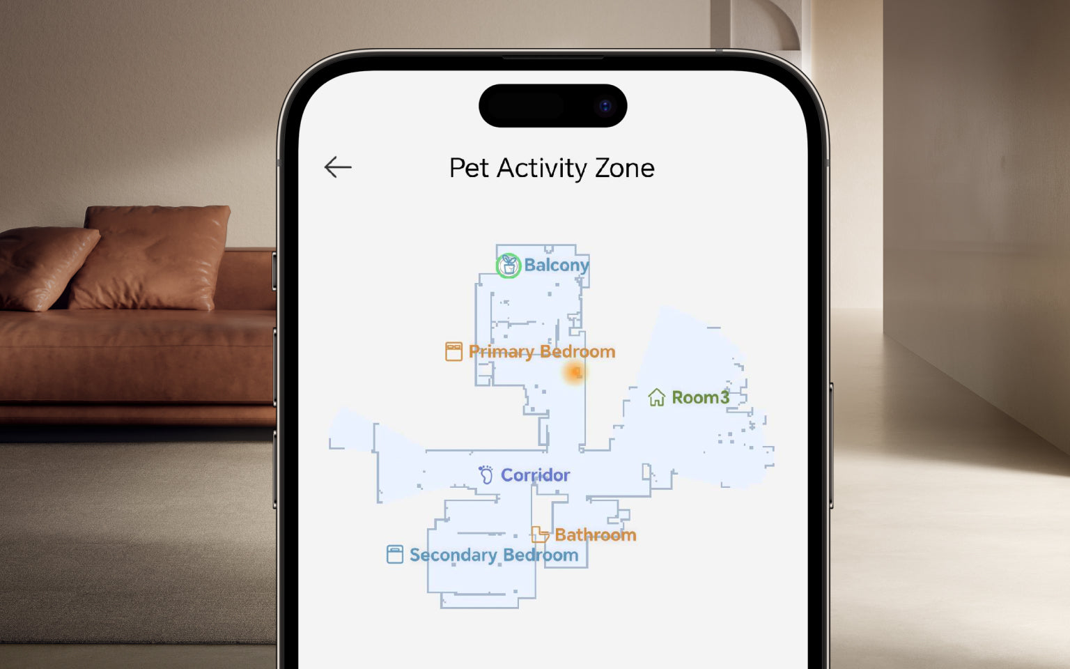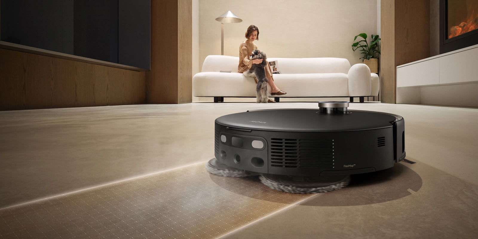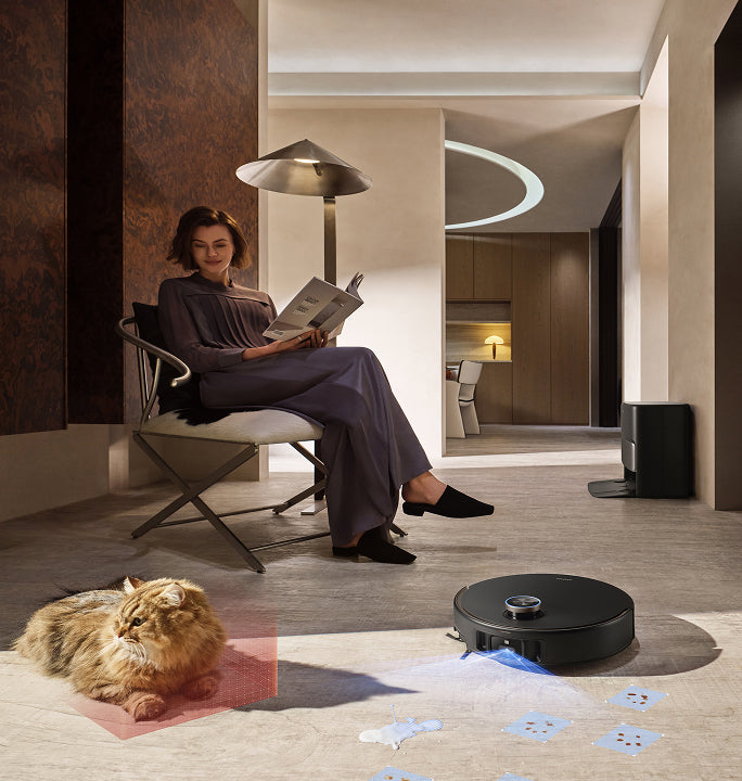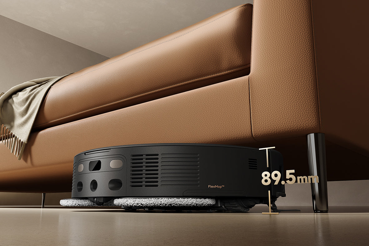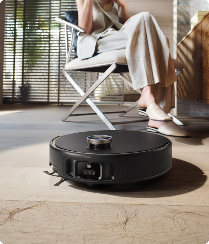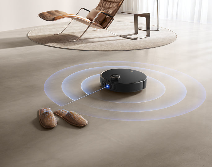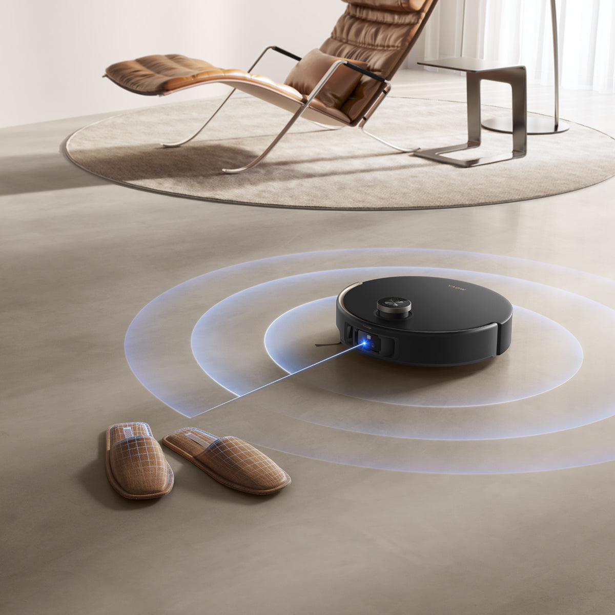 StepMaster™-systemet har ett infällbart robotstöd som kan lyfta chassit och enkelt ta sig över trappsteg, trösklar, dörrskenor, U-formade möbelben och mindre hinder på upp till 6 cm*. Systemet kan enkelt navigera komplexa omgivningar för en grundlig rengöring och smidig återgång till basstationen.