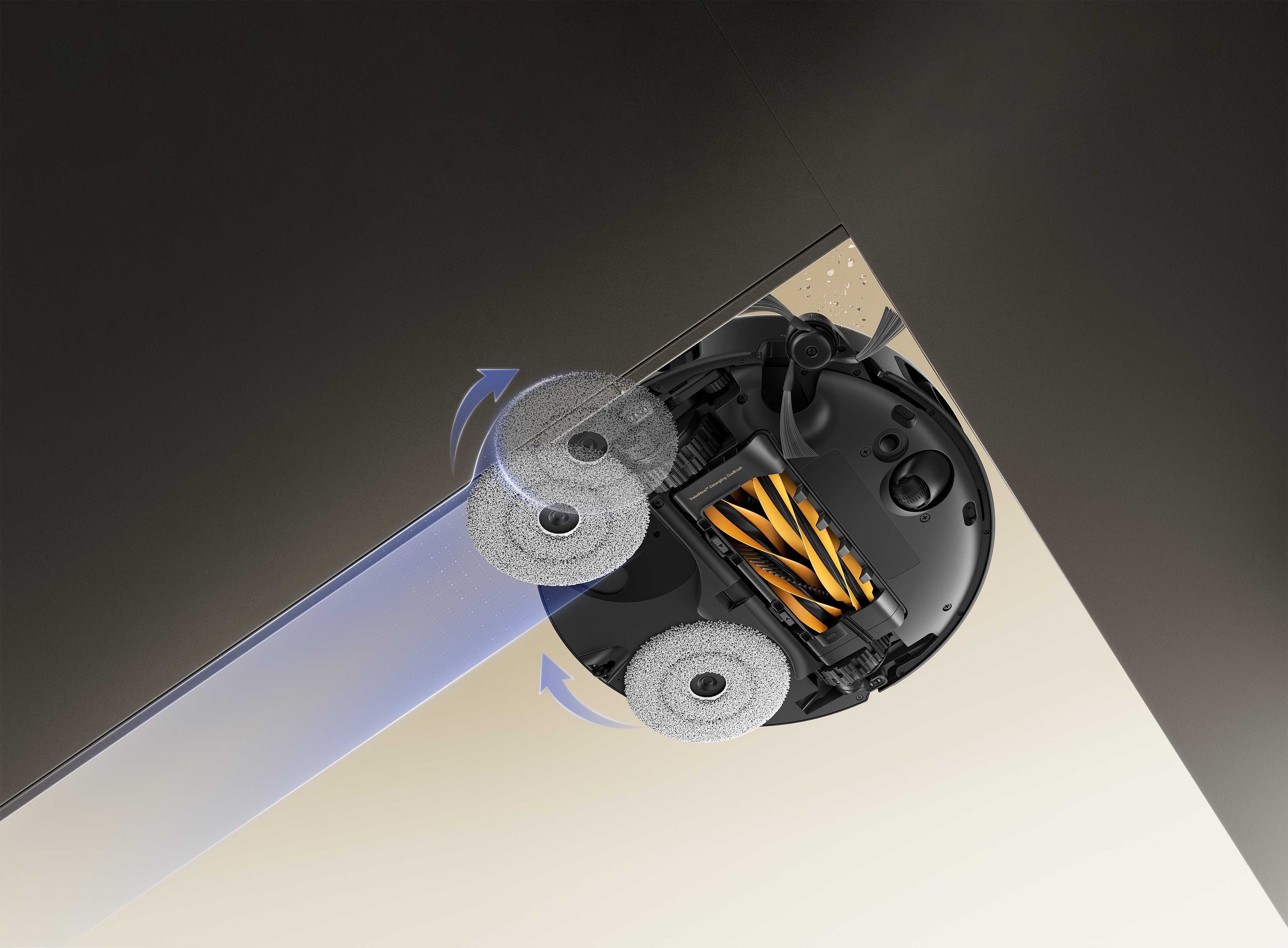 Huvudborsten, sidoborsten och moppen lyfts dessutom upp när enheten går över trösklar och hinder.