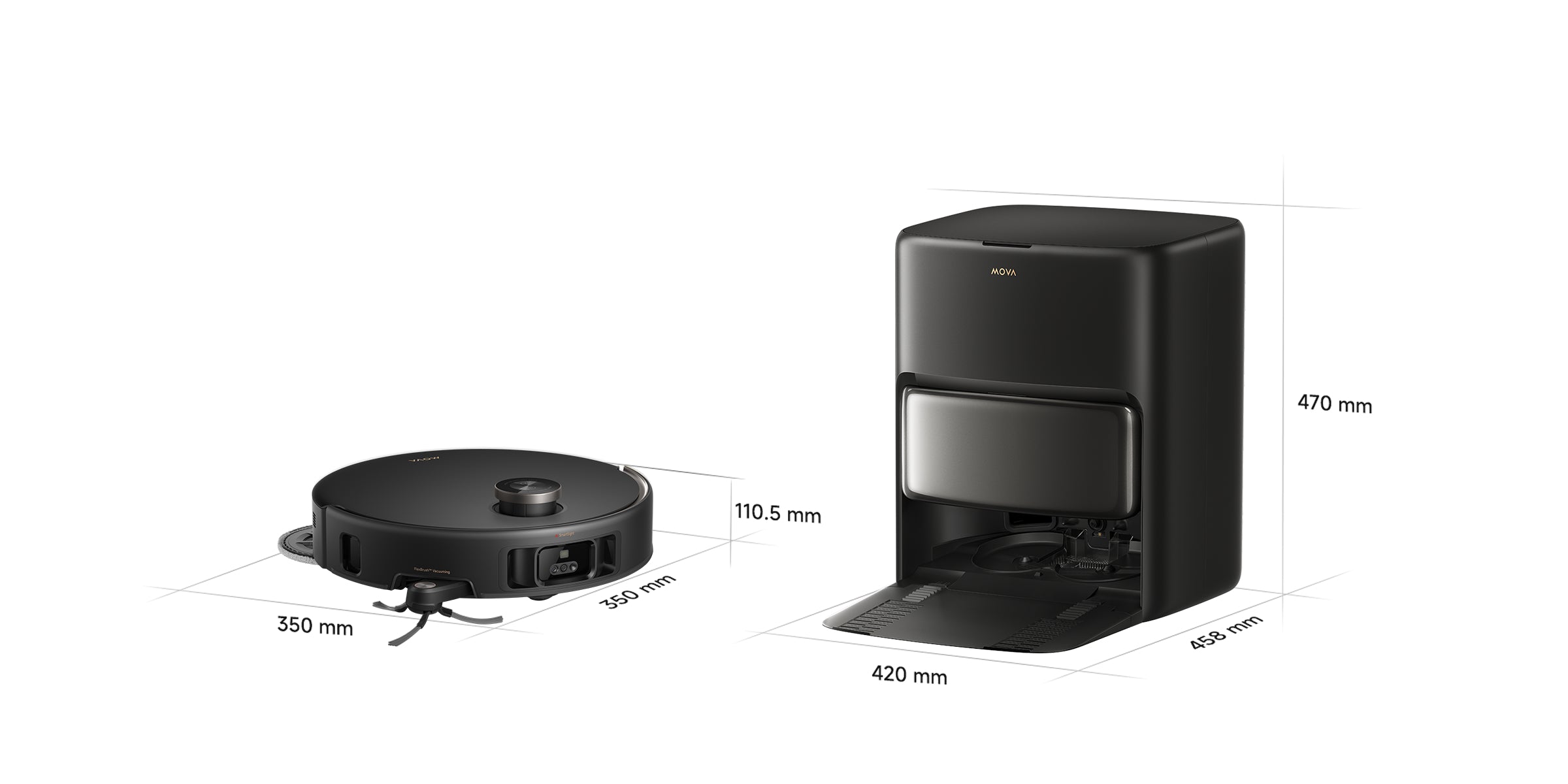 Robotdammsugarens mått 350 x 350 x 89,5 mm (DToF indragen)