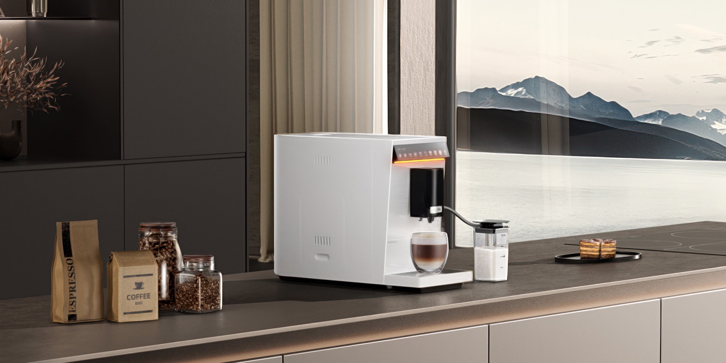 Maskinenheten lutar framåt med 4,6°* för att skapa en bekvämare vinkel för placering av kopparna. LED-displayen är också ergonomiskt vinklad på en höjd för enkel touchstyrning, oavsett om du står eller sitter, vilket ger dig en förhöjd kaffeupplevelse.