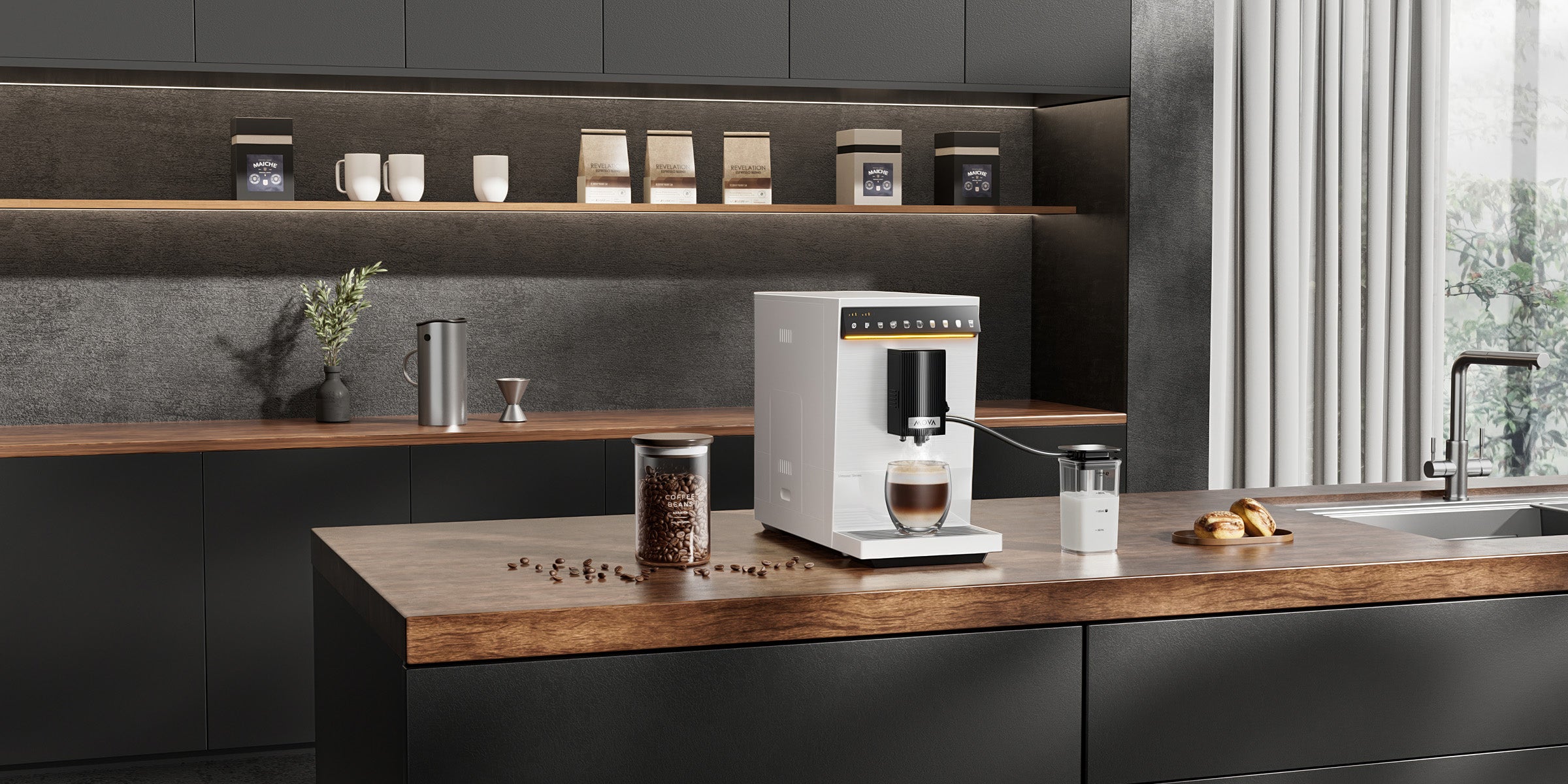 Navigera enkelt med hjälp av livfulla, färgkodade ikoner för att hitta dina favoritfunktioner och drycker. Med enkelhet i fokus: peka, välj och njut av din dryck.