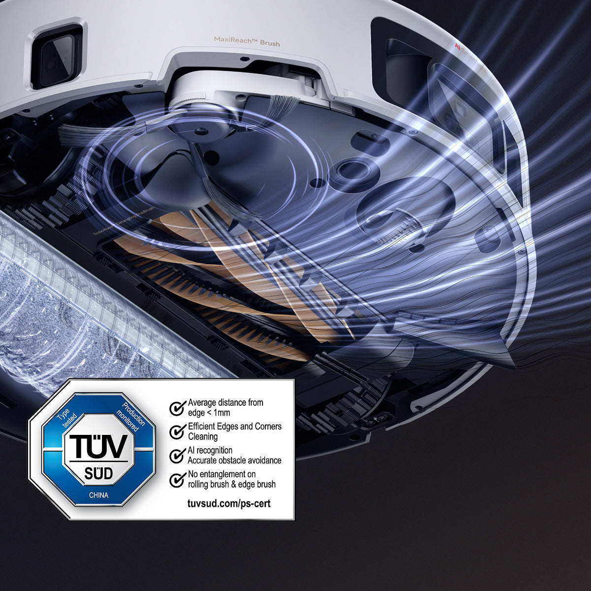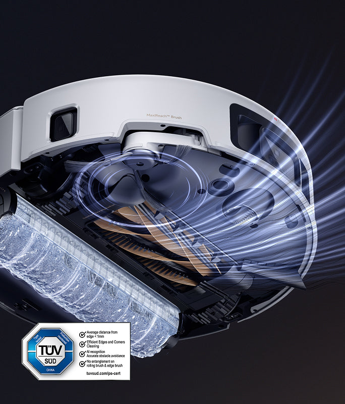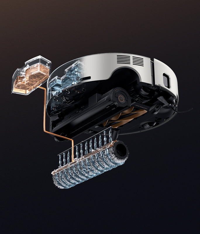 * +36 %: Z60 Ultra Roller Complete förbättrar jordabsorptionskapaciteten med 36 % jämfört med andra MOVA-robotmodeller med dubbla skivor, baserat på tester i vårt interna laboratorium. Faktiska resultat kan variera beroende på omgivningsförhållanden.