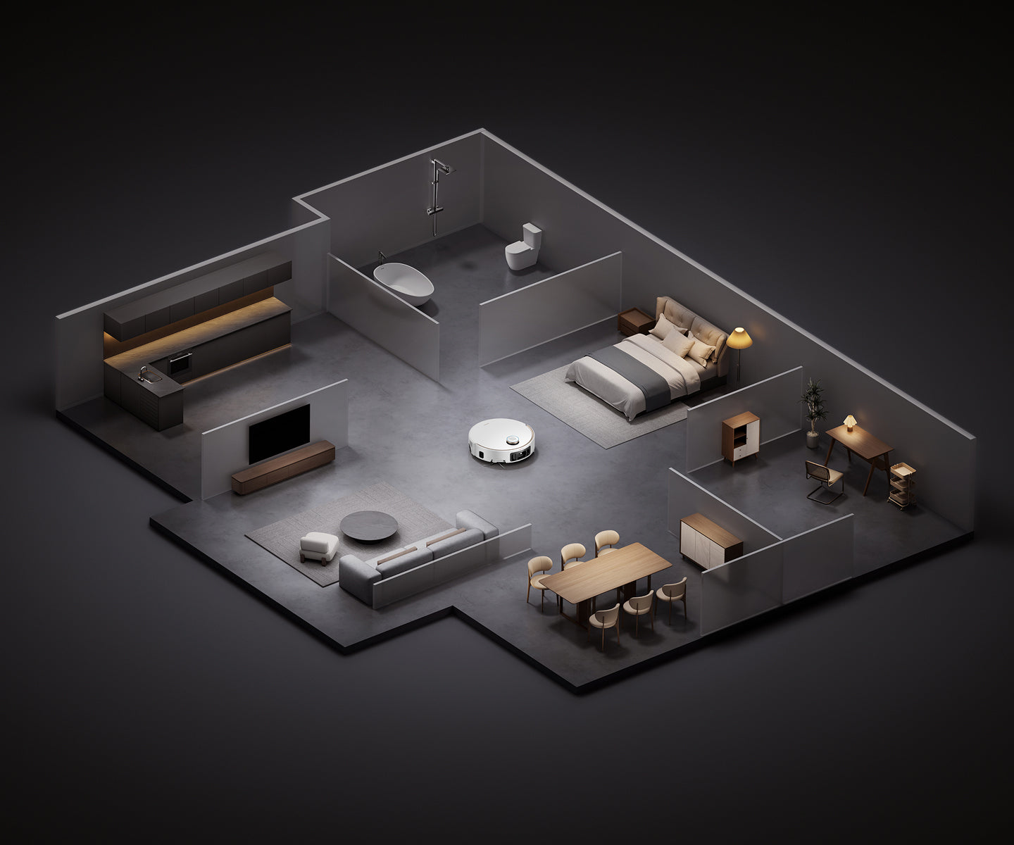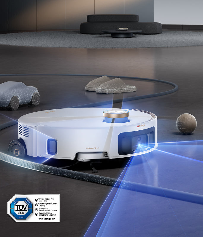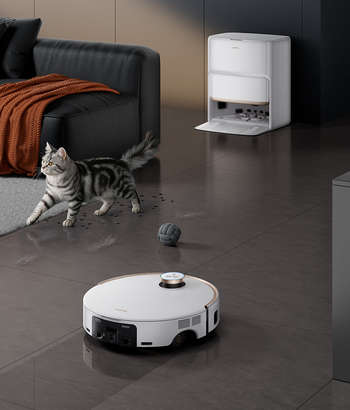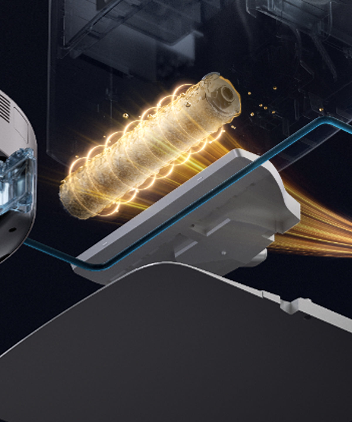 Upplev bekvämligheten med allt-i-ett-basstationen som är utformad för att förenkla din städrutin med automatisk påfyllning, tömning, tvätt och laddning, vilket möjliggör ett verkligt underhållsfritt användande.