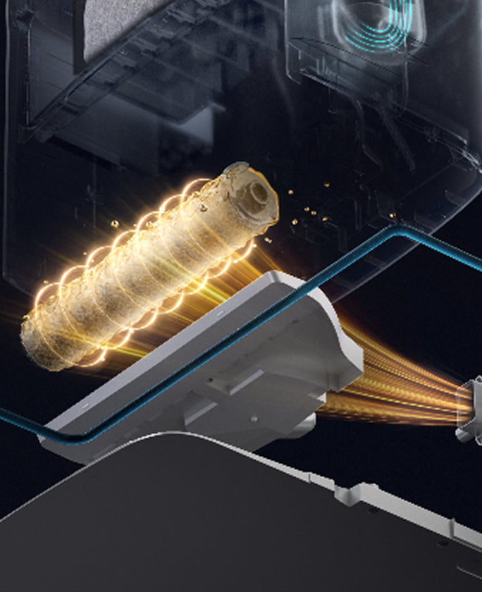 * 30 %: Den har 30 % högre rengöringseffektivitet jämfört med en rullmopp utan fluffningsrullen, baserat på våra interna laboratorietester med torkade sojasåsfläckar (5 ml) på ett område på 1,5 m × 2 m. Resultaten kan variera vid faktiskt användning.
