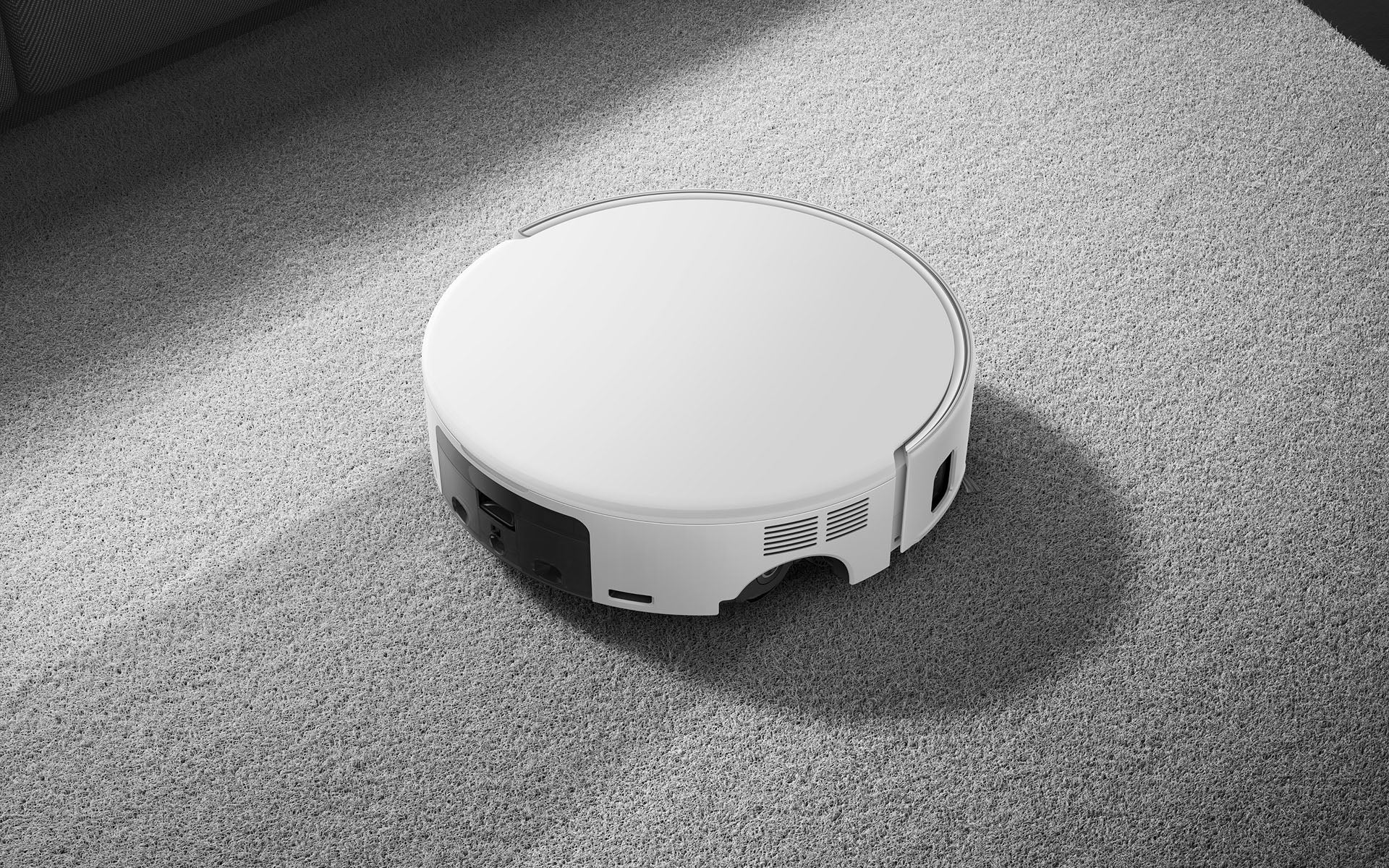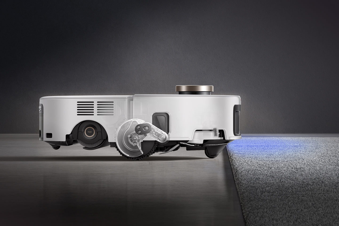 *Föredragen lösning: Detta avser en jämförelse med robotdammsugare som saknar en skyddsplatta och därmed kan blöta ner mattan. Denna modell har en skyddsplatta på undersidan som förhindrar att fukt tränger in vid rengöring på mattor och som samtidigt förbättrar städresultatet.