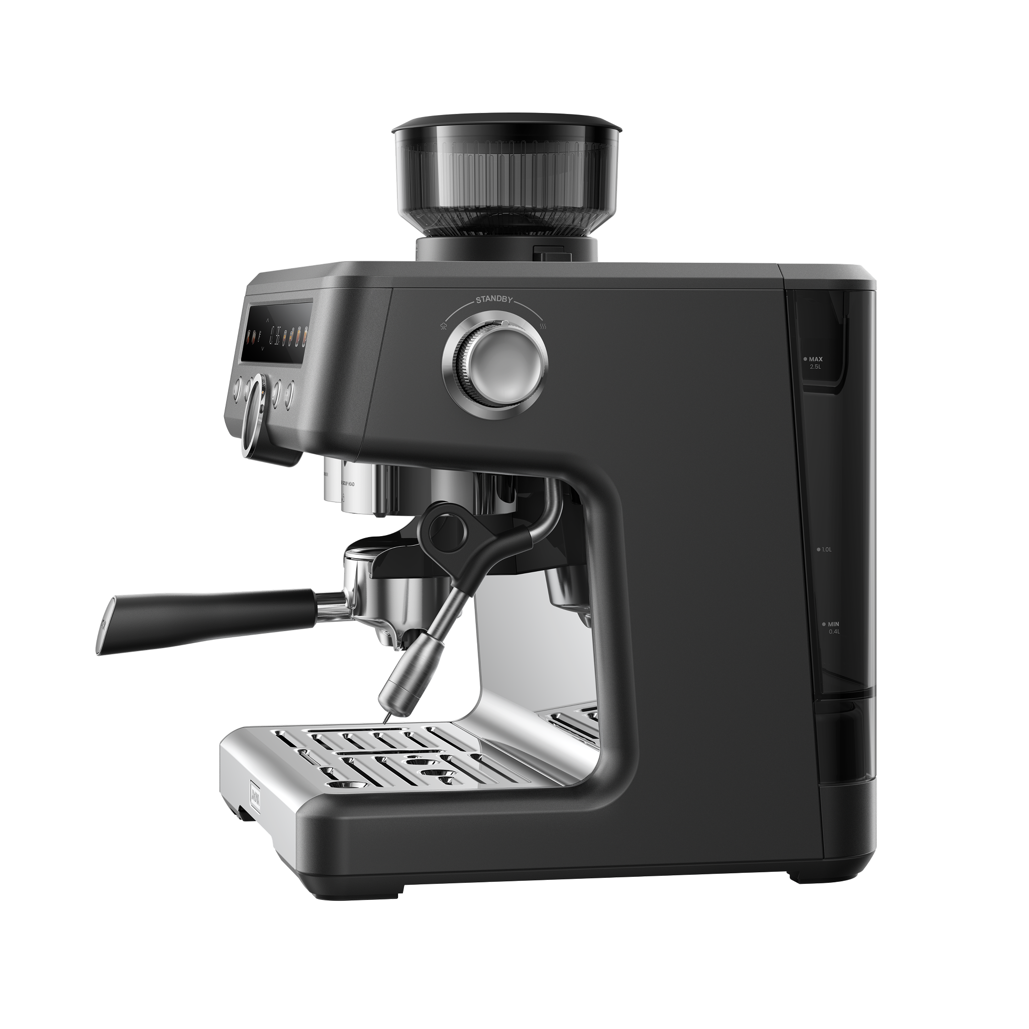 Antistatisk malningsteknologi minskar uppbyggnad av statik under malning. Upplev inget pulver som fastnar eller sprids när du tar bort portafiltret eller kaffesumpsbehållaren. Njut av en renare kaffehörna med minimal röra.