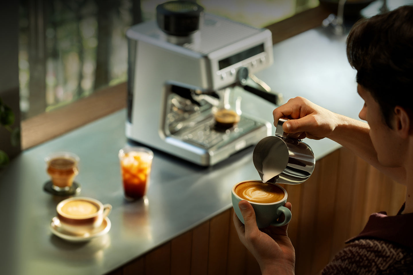 Välj mellan fyra förinställningar - espresso, dubbel espresso, lungo eller kallbrygd - via pekskärmen. Varje kopp är finjusterad för fyllig smak. Oavsett om du är ny, upptagen eller gör drinkar åt en publik – gör dessa förinställningar det enkelt att brygga kaffe av cafékvalitet på några sekunder.